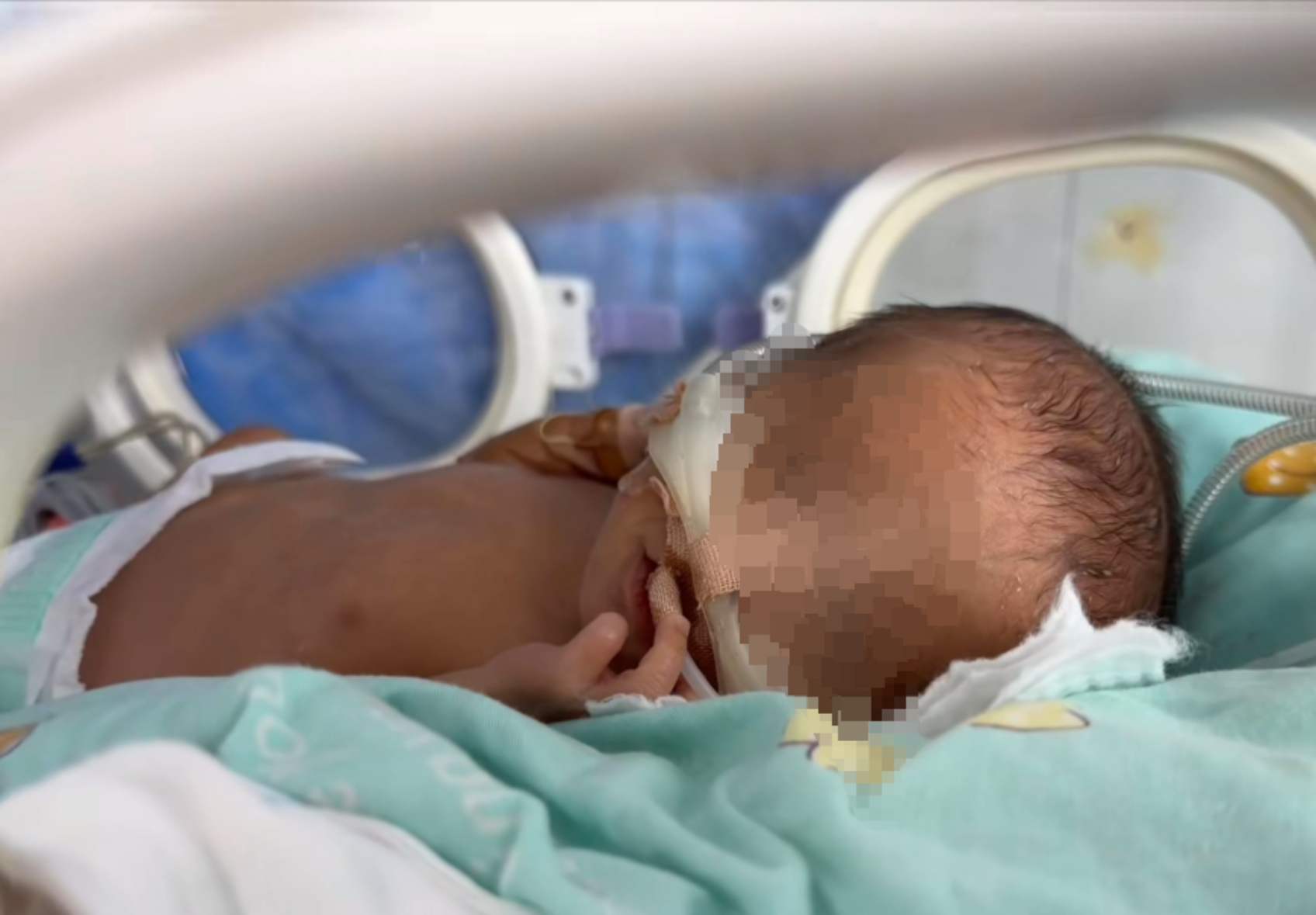 黄女士向封面新闻透露,孩子天乐于今年8月6日出生。由于母体“羊水偏少”,孩子在胎龄31周时进行了剖腹早产,出生时体重仅为960克。